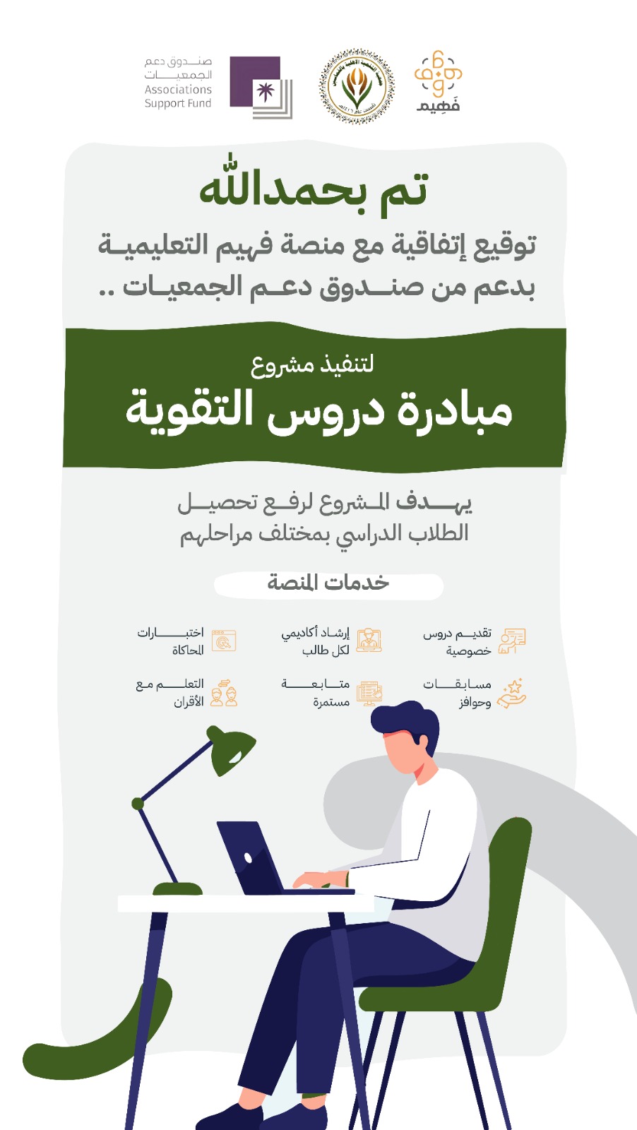 أطلقت جمعية التنمية الأهلية بالخماسين مشروع "مبادرة دروس التقوية"، وذلك بعد توقيع اتفاقية تعاون مع منصة فهيم التعليمية، وبدعم من صندوق دعم الجمعيات. وتأتي هذه المبادرة كجزء من برامج الجمعية النوعية الرامية إلى دعم أبناء المجتمع المحلي، حيث يستهدف المشروع رفع كفاءة التحصيل الدراسي للطلاب والطالبات في مختلف المراحل التعليمية، وتزويدهم بالمهارات الأكاديمية اللازمة للتميز. وأوضحت الجمعية أن الشراكة مع منصة "فهيم" ستتيح للطلاب المستفيدين الوصول إلى حزمة من الخدمات التعليمية الرقمية المتقدمة، تشمل: الجلسات التعليمية، والدعم الأكاديمي، والبيئة التفاعلية، إضافة لأدوات القياس، والتحفيز. وأكدت إدارة جمعية التنمية الأهلية بالخماسين أن المبادرة تمثل نقلة في نوعية الخدمات التنموية المقدمة، حيث تسعى الجمعية من خلالها إلى تطويع التقنية لخدمة التعليم، مشيدةً بالدور الكبير الذي يقوم به صندوق دعم الجمعيات في تمويل المشاريع ذات الأثر الاجتماعي المستدام.